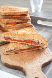 Croque-monsieur au poivron rouge, jambon cru et fromage de brebis