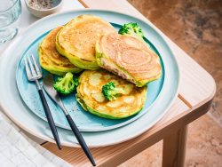 - Mixez les œufs avec le lait et les fleurettes de brocoli. Mélangez la farine, la levure, 1/2 c. à café de sel et du poivre dans un saladier, ajoutez le liquide et mélangez.