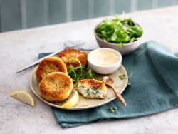 Croquettes de poisson aux légumes, mayonnaise au raifort