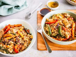 Émincé de dinde aux légumes sautés et quinoa