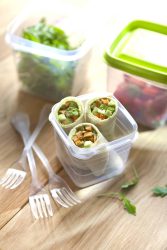 - Envelopper aussitôt ces « sandwiches » dans du film alimentaire pour éviter que les enchiladas se déroulent et pouvoir les emporter.