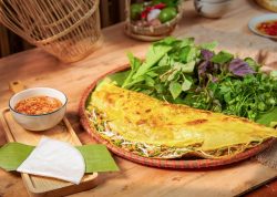 Astuce : Cette galette peut se manger de la même façon que des nems : coupez un morceau de galette, déposez-le dans une feuille de salade, arrosez d’un peu de sauce, ajoutez quelques feuilles de menthe et dégustez.