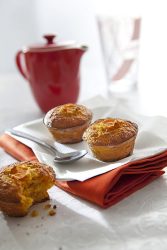 - Verser l'appareil dans 8 petits moules. Puis disposer une rondelle de carotte pour décorer.