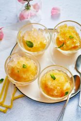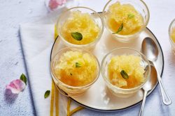 - Servir les granités dans des verrines, ou des coupes bien froides, parsemés de menthe fraîche.