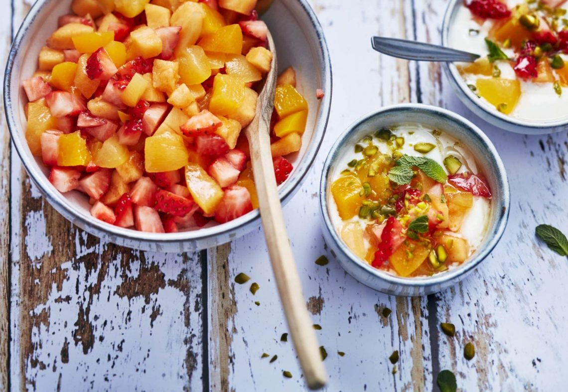 - Rincer les abricots, les pêches et nectarines, les dénoyauter et les couper en morceaux. Couper la chair de melon en cubes.