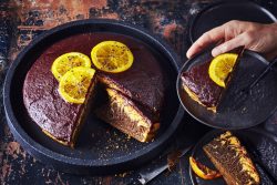 - Déposer des tranches d’oranges confites et parsemer de graines de sésame noir juste avant de déguster !