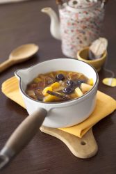 - Verser les fruits dans le bouillon (en option parfumer au rhum brun).
