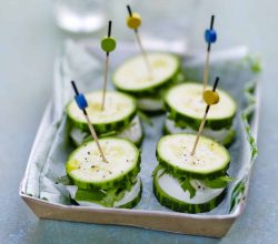 - Ferme le petit burger avec une rondelle de courgette.