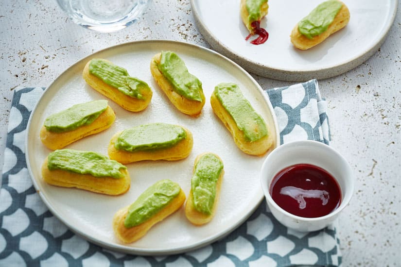 - A la poche à douille, garnir les éclairs de la mousse d’avocat.