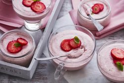 - Décorer les mousses de morceaux de fraises et de basilic frais juste avant de servir.