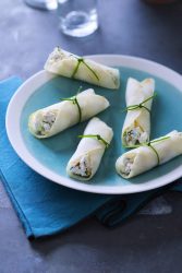 Nems de céleri rave au fromage frais, noix et ciboulette