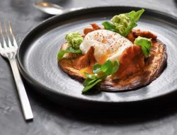 L’oeuf poché peut être remplacé par un oeuf frit. Hors saison de l’ail des ours, la glace peut être réalisée avec de la ciboulette.