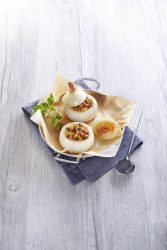 - Préchauffez votre four à 180°C. Vérifiez la cuisson de vos oignons doux avec la pointe d’un couteau.