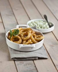Onion rings (beignets d’oignon) et pesto à la menthe
