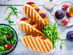 - Avant de servir, ouvrez les panini et ajoutez la roquette.