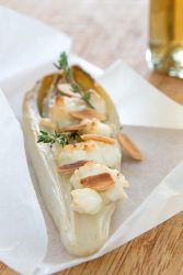 Papillote d’endives au chèvre chaud et aux amandes grillées
