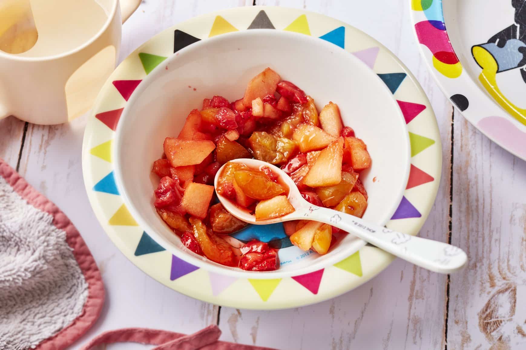 - Laver, dénoyauter et couper les prunes en morceaux.