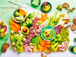 Disposez les ingrédients sur votre planche selon l'agencement de votre choix et servez avec le pain.