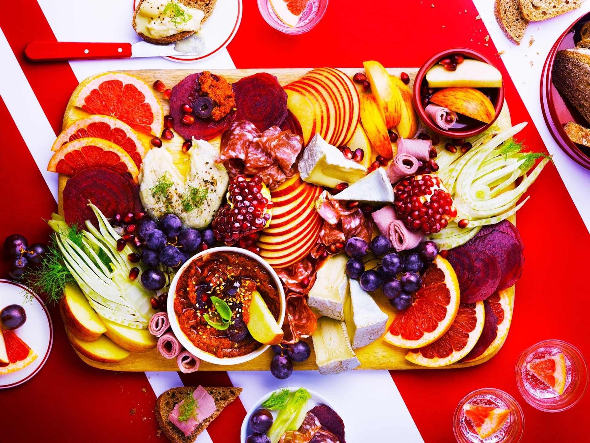 Disposez les ingrédients sur votre planche selon l'agencement de votre choix et servez avec le pain.