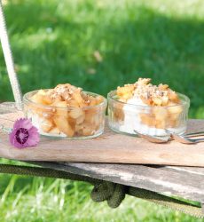 Poêlée de pomme pralinée et nougat glacé