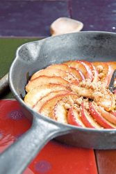 La poêlée de pommes est une base à customiser : avec des fruits secs torréfiés (noix, noisettes ou amandes grillées à sec dans une poêle antiadhésive), avec une boule de glace (vanille, nougat glacé, sorbet pomme…), ou encore un nuage de chantilly, une cuillerée de crème fraîche… et dans une version salée, accompagnée classiquement d'un bon boudin noir ou d'une volaille rôtie.
