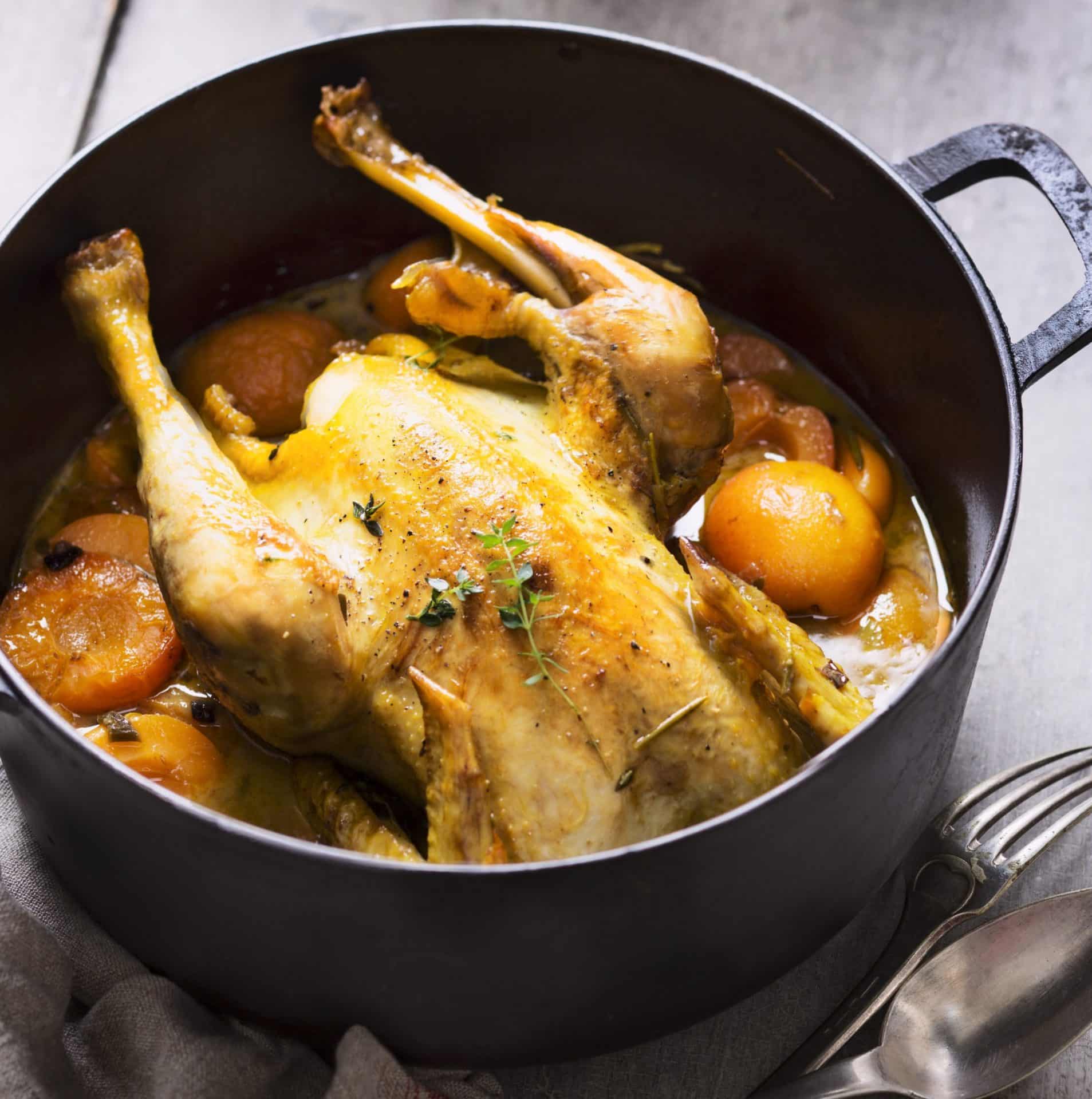 - Déguster le poulet aux abricots et au cidre bien chaud accompagné de riz blanc et parsemer de coriandre fraîche ciselée juste avant de servir.