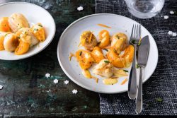 En option : pour une finition « gastro » : napper le fond des assiettes de sauce et dresser harmonieusement dessus les Saint-Jacques et les clémentines. Décorer de ciboulette ciselée.