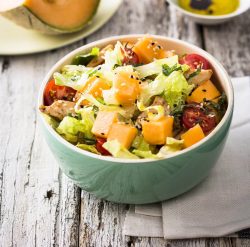 - Dans un saladier, mélanger tous les ingrédients et parsemer de graines de sésame juste avant de servir.