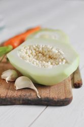 - Peler les légumes. Oter les graines de la papaye et le noyau de la chayotte. Râper les légumes et les déposer dans un saladier.