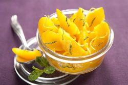 - Parsemer les fruits de menthe ciselée et bien mélanger.