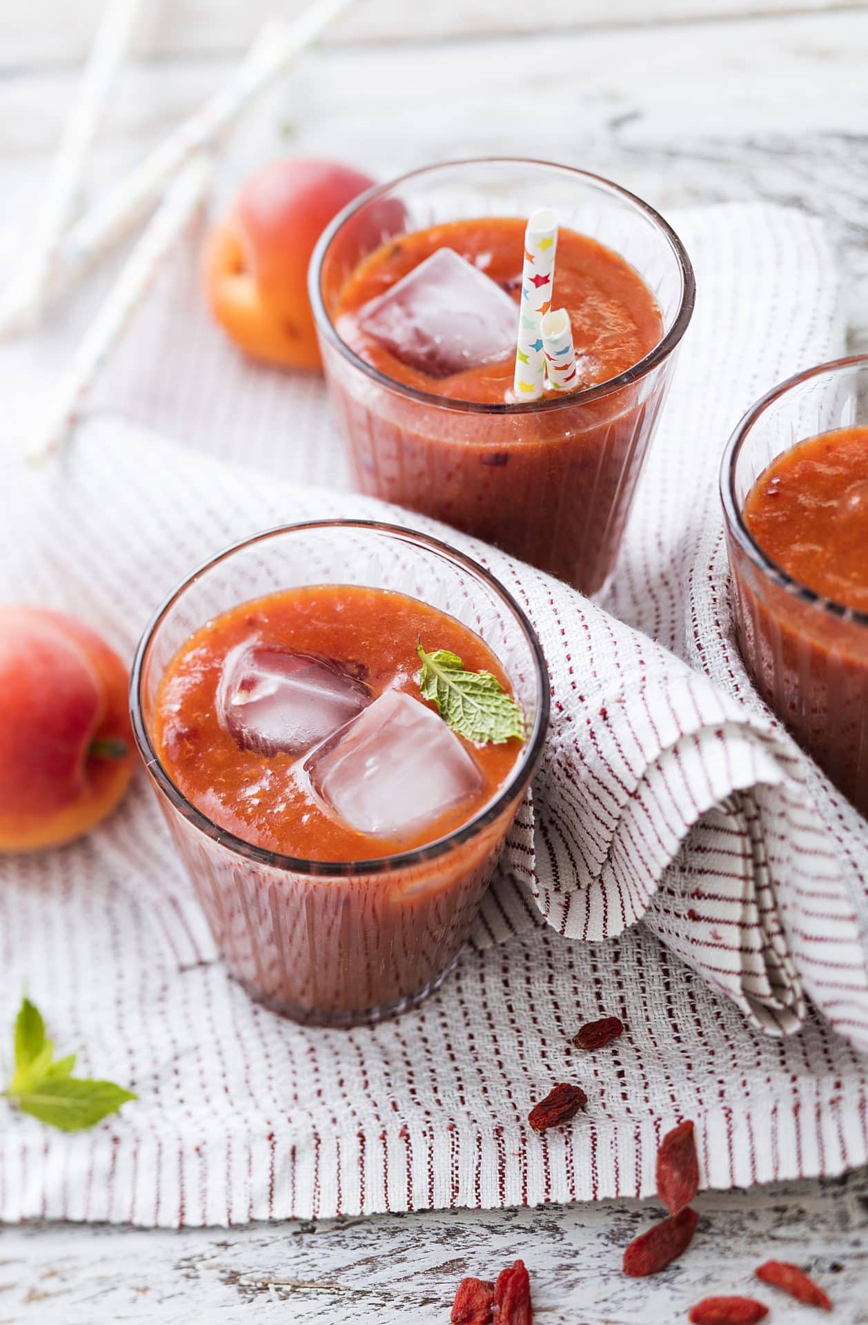 - Les déposer dans le bol du blender avec le gingembre râpé puis mixer. Ajouter les baies de goji et leur jus de trempage, quelques feuilles de menthe et mixer à nouveau.