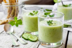 - Décorer d'un brin de ciboulette entier ou ciselé. Servir très frais dans des verres (ou des assiettes creuses).
