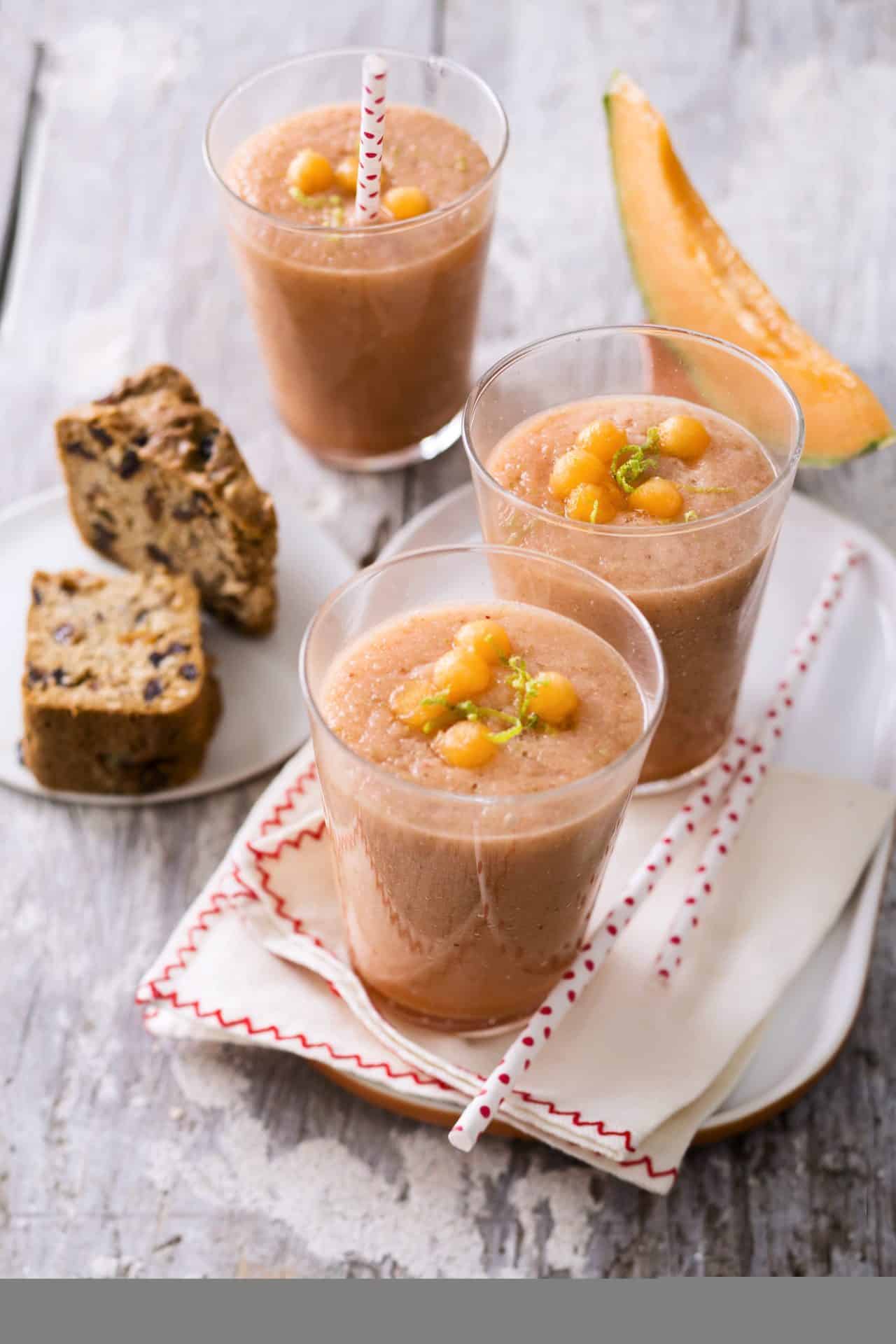 - Servir bien frais et déposer quelques billes de melon juste avant de servir.