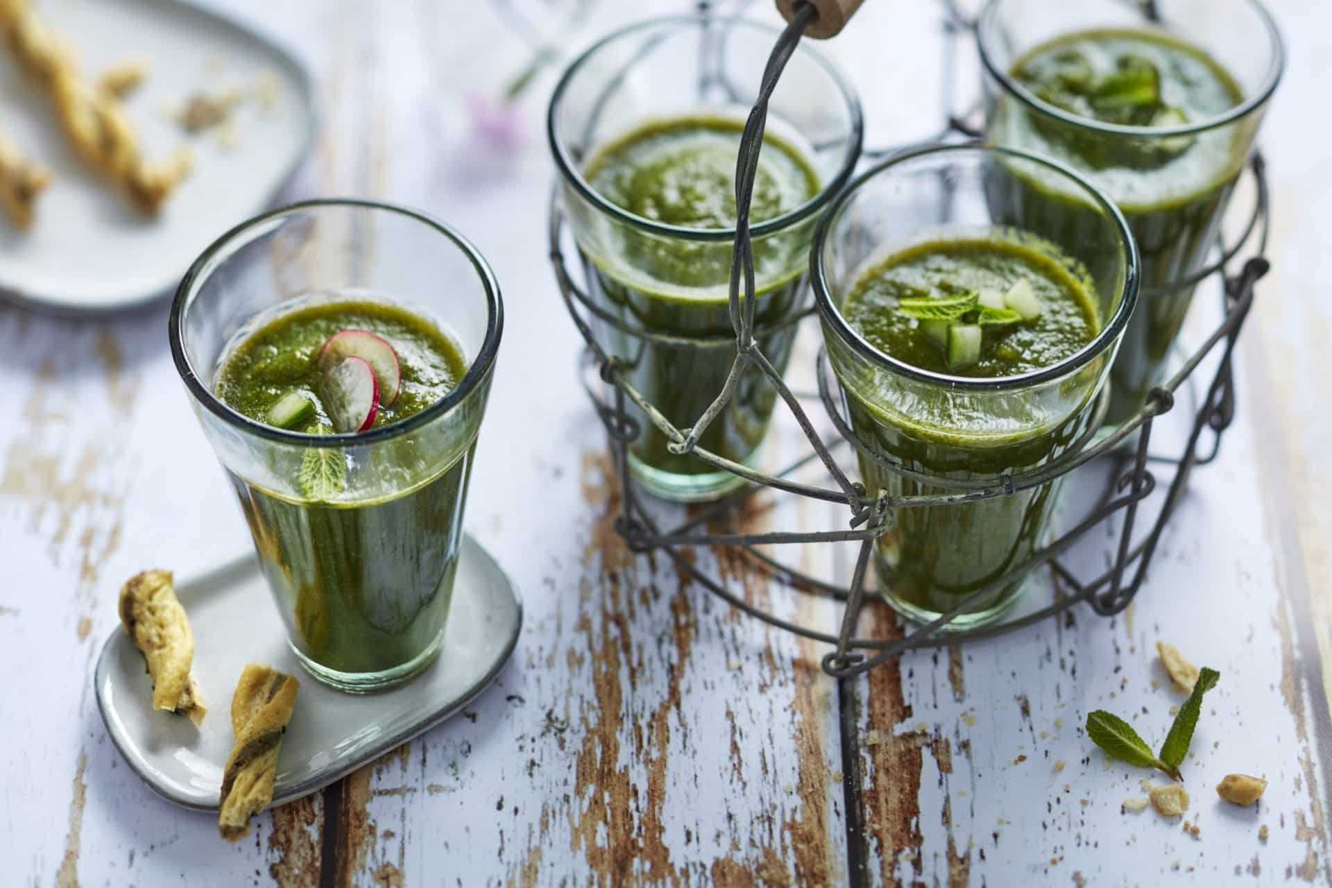 - Nettoyer le concombre (laisser la peau) et les radis (garder les fanes pour faire un potage ou corser une salade). Rincer les feuilles de menthe. Laver, zester et presser deux citrons verts. Couper le concombre en tronçons.