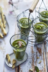 Mixer, assaisonner selon votre goût (sel et poivre) et décorer d’une feuille de menthe juste avant de servir. A déguster bien frais !