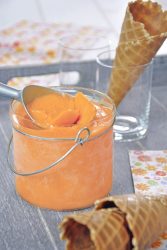 Servir ensuite le sorbet au gré des envies dans des cornets ou dans des coupes.