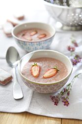 - Servir la soupe de rhubarbe dans de petites coupelles.