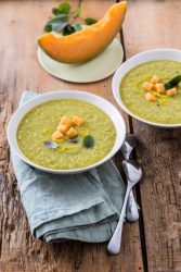 - Ajouter quelques dés de melon au moment de servir, une feuille de menthe poivrée et des zestes de citron.