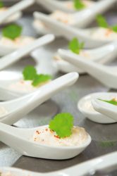 - Dresser dans des cuillères de dégustation ou en verrines.