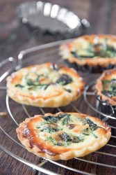 - Etaler la pâte brisée puis la placer dans un moule à tarte (ou des moules à tartelettes individuels). Répartir le cresson sur la pâte puis verser la préparation à la ricotta.