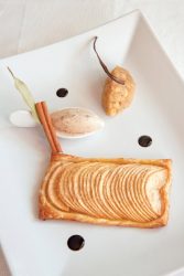 Cette recette est aussi réalisable avec des poires ; on les choisira un peu fermes pour qu’elles tiennent bien à la cuisson. Cette tarte (aux pommes ou aux poires) peut être parsemée d’amandes effilées et grillées pour apporter au dessert une note croustillante.