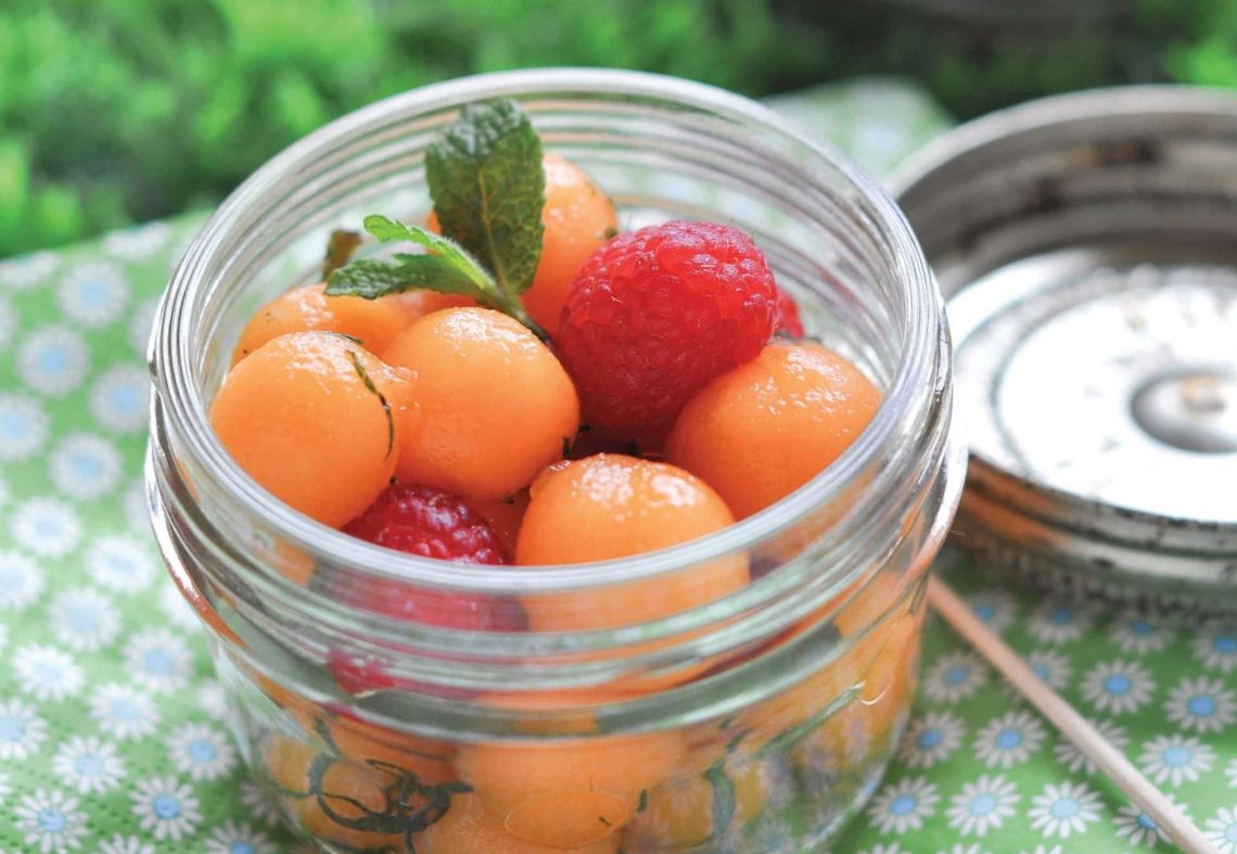 - Remuer délicatement et régulièrement les billes de melon jusqu'à ce qu'elles deviennent tendres et imbibées de sirop. Réserver.
