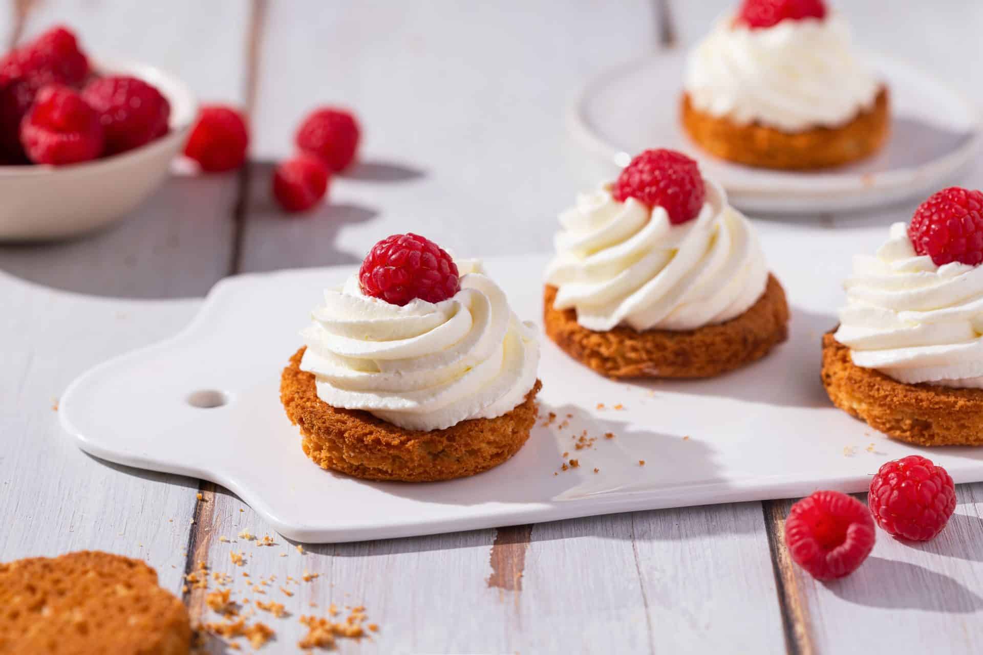 Tartelettes minute aux framboises et chantilly à la rose