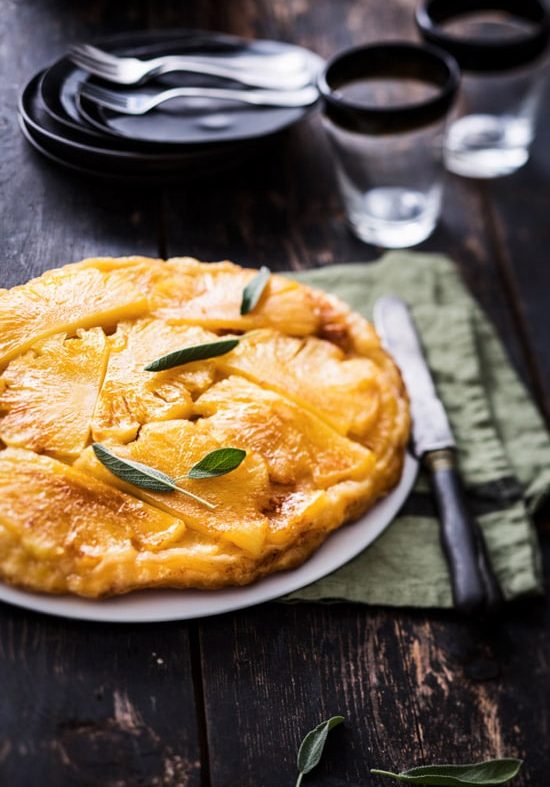 - Dans une poêle, mettre le beurre à chauffer puis verser les dés d’ananas. Les faire dorer environ 5 min en remuant de temps en temps.
