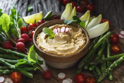 Servez l’houmous de fanes de radis avec les radis.