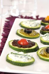 - Tartiner 1/3 des rondelles de courgette de tarama, 1/3 de tapenade et 1/3 de fromage frais.