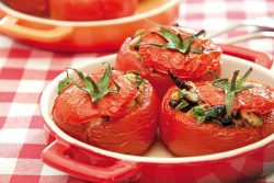 - Enfourner les tomates dans un plat à gratin pour 35 min de cuisson. Servir accompagné d'une salade verte parfumée de roquette ciselée.