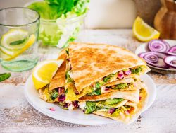 Tortilla façon Gözleme salade feta et oignon rouge