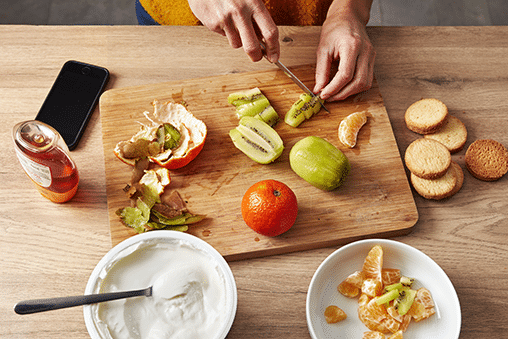 - Eplucher et couper les kiwis et les clémentines en petits morceaux.
