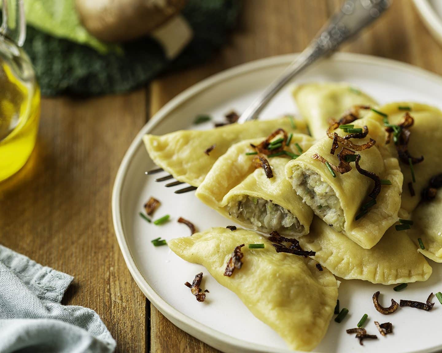 - Dans une grande casserole d’eau bouillante, plonger les vareniki et les faire cuire 3 minutes environ.